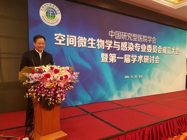 2016年12月20日,在北京長峰假日酒店,舉行“中國研究型醫(yī)院學(xué)會(huì)空間微生物與感染專業(yè)委員會(huì)成立大會(huì)暨第一屆學(xué)術(shù)研討會(huì)”,錦華公司蘇總參加大會(huì),并當(dāng)選為“空間微生物學(xué)與感染專業(yè)委員會(huì)委員,劉長庭將軍親自為蘇總頒發(fā)證書。蘇總在第一屆學(xué)術(shù)會(huì)上講話。