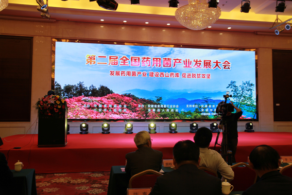 在金寨縣粵海酒店舉行了第二屆全國(guó)藥用菌產(chǎn)業(yè)發(fā)展大會(huì),中國(guó)工程院院士、國(guó)際藥用菌學(xué)會(huì)主席李玉教授和金寨縣縣長(zhǎng)汪冬致辭。