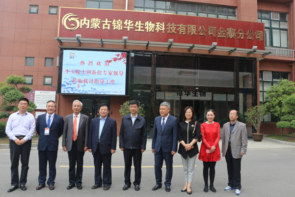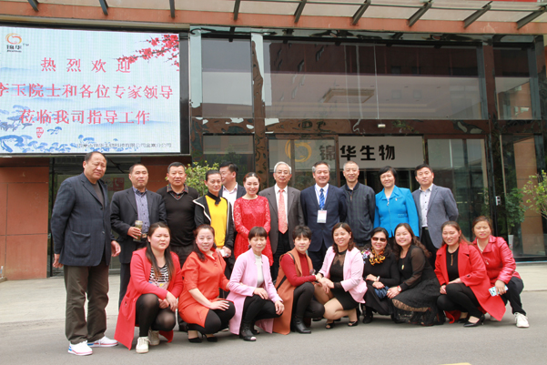 領(lǐng)導(dǎo)和專家在生產(chǎn)基地門前合影