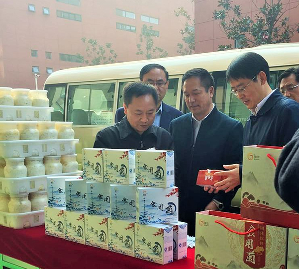 李省長興致勃勃觀看食用菌產(chǎn)品并咨詢有關(guān)情況