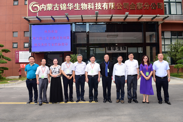 李玉院士、國(guó)務(wù)院參事劉奇、?,摃?huì)長(zhǎng)、邊銀丙會(huì)長(zhǎng)、胡桂芳主任、汪冬縣長(zhǎng)、溫董、蘇總在錦華公司合影留念