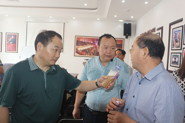 參觀完畢后六安市食藥監(jiān)局局長方志龍親自拿食用菌精粉泡開,跟章松應(yīng)局長進行感官評價,味道香醇,玉米的味道很自然的調(diào)劑了猴頭菇的苦澀味兒。