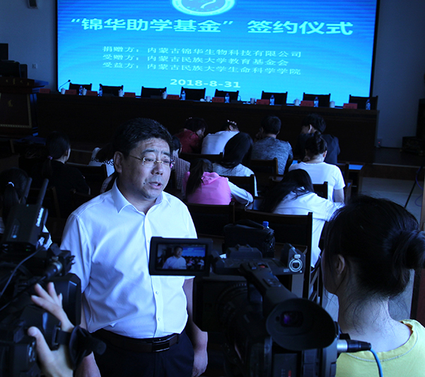 “錦華助學(xué)基金”向內(nèi)蒙古民族大學(xué)捐助的54萬(wàn)元善款。是從2018年到2021年四年期間將資助貧困生120人次,每生每年4500元。