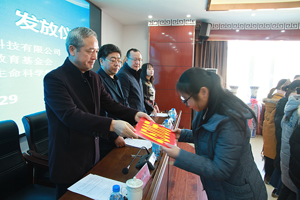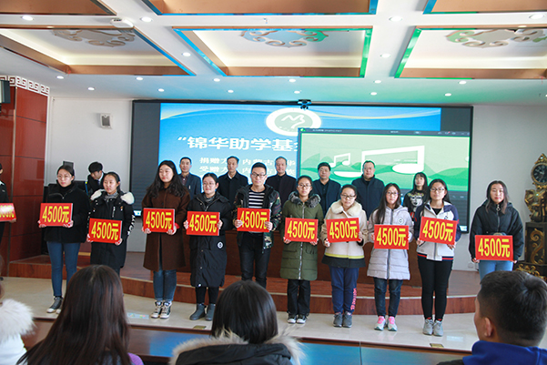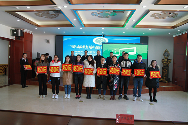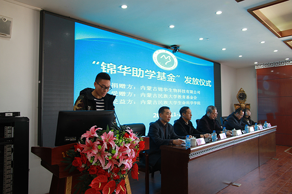 儀式上,民族大學教育基金會賀智慧秘書長宣讀助學金發(fā)放決定;計劃自2018年起連續(xù)4年,每年出資人民幣135000元,共計出資人民幣540000元,設立“錦華助學金”,用于資助生命科學學院品學兼優(yōu)、家庭困難的學生。現(xiàn)將2018年度助學金發(fā)放給齊達爾罕等30名同學,資助金額為每人人民幣4500元。