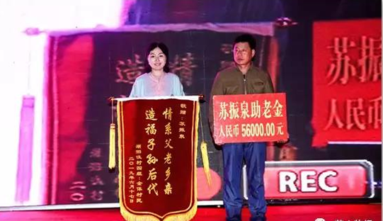 內(nèi)蒙古錦華集團董事長溫晴向湖泗汰村70歲以上老人捐贈助老金