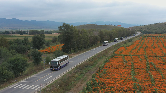 錦華精英的車隊陸續(xù)駛?cè)胩K人牧場