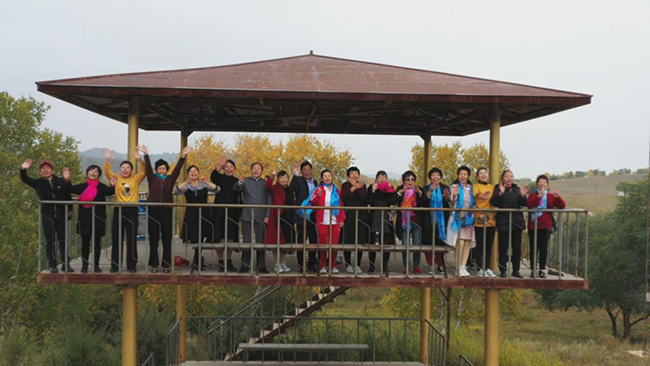 向北,他們踏上了內(nèi)蒙古赤峰大地,隴上一片秋色,田野五谷金黃,農(nóng)民忙收割。