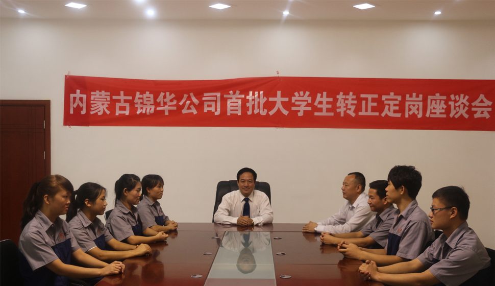 2016年10月7日內蒙古錦華公司校企聯(lián)合首批大學生進行了定崗座談會。會議期間蘇總對大學生就像對待孩子一般溫馨照顧。并詳細描述了錦華公司的發(fā)展未來,并確定大學生工作崗位。